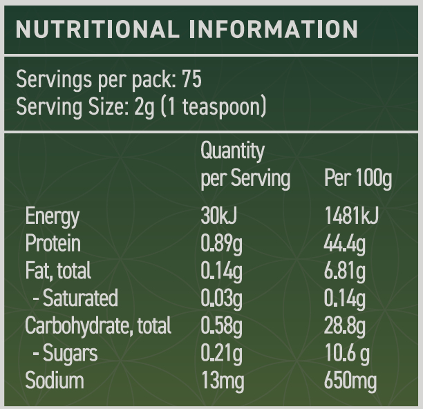After harvesting, the grasses are freshly juiced and then gently dried at a low temperature using a specialised process designed to preserve delicate nutrients, antioxidants, enzymes, vibrant colour and natural flavour. This careful method protects the integrity of the plant, allowing the powder to closely replicate the nutritional profile and taste of fresh grass juice when mixed with water.
